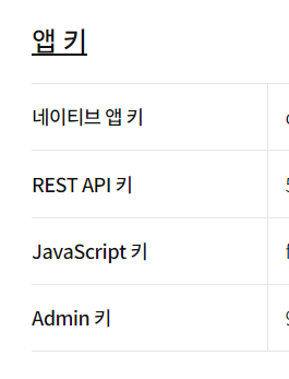 만들었으면 앱에 들어가서 요약정보를 보면 앱키 값들이 나와있다.