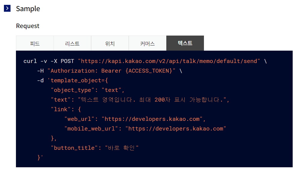 https://developers.kakao.com/docs/latest/ko/message/message-template#text