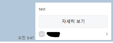 테스트 메세지가 왔다. 자세히보기를 누르면 template_object에 정의한 link값으로 이동한다.