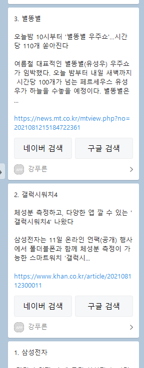 | Python 구글 트렌드 인기 검색 10위 카톡 나에게 보내기 (1) (0) | 2021.08.13 |