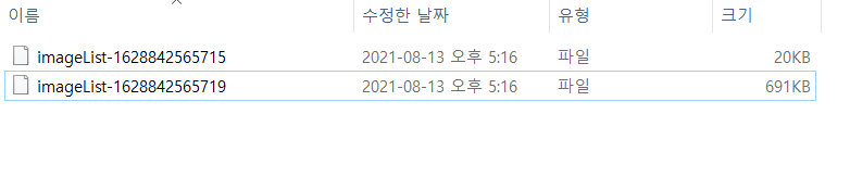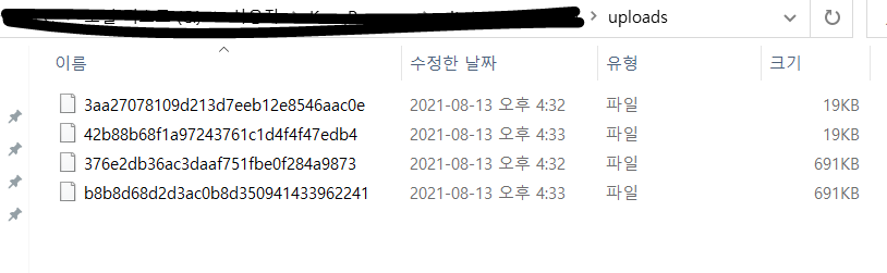 이미지 파일을 2개 업로드했는데 암호화된 파일명이 4개가있다