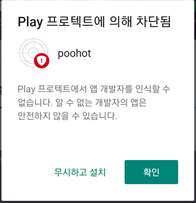 중간에 경고가 뜨는데 우리가 빌드한 파일이니 무시하고 설치를 한다.