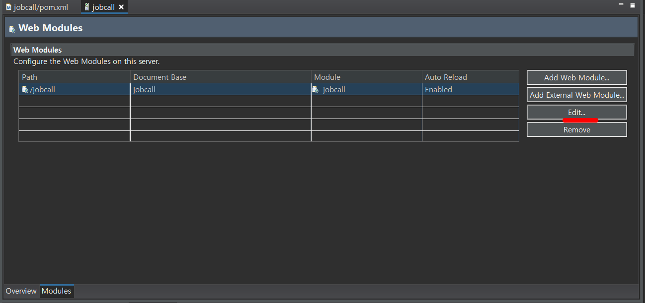 수정 후 세이브 해주고 Modules 탭으로 간다