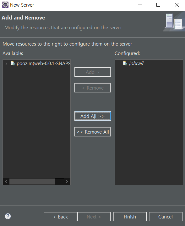 (Finish 누르고 나중에 서버에 프로젝트를 추가해도 된다)