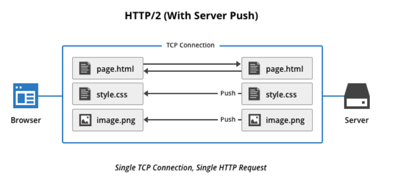 좀 더 자세하게 말하면 HTTP 2.0에서는 클라이언트가 요청하지 않은 리소스 전송이 가능한데 이 리소스들은 PUSH_PROMISE 라는 약속된 프레임안에 구성되어있다. 클라이언트는 PUSH_PROMISE을 수신 후 RST_STREAM 스트림을 통해 PUSH_PROMISE에 대한 거부 옵션을 설정 할 수 있어 효율적인 리소스 관리가 가능하다.