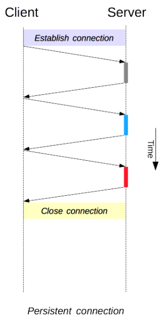 지정한 시간동안 Connection을 닫지 않아 하나의 커넥션에 여러 요청과 응답을 하기 때문에 이전보다 시간을 줄일 수 있었다. 처리를 완료한 유휴상태일때도 서버 리소스를 소비한다는 단점이 있다