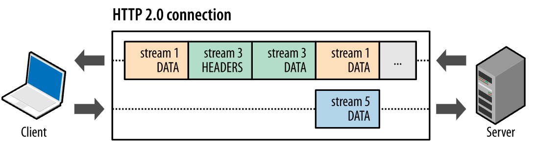 추가적으로 2.0에선 스트림의 개념이 생기는데 다수의 메세지로 구성되어 있고, 양방향의 특성을 가진 스트림을 여러개 두어 서버와 클라이언트간에 통신하여 멀티플렉싱을 구현하는 것이다.