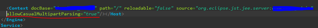 그림의 빨간부분 처럼 allowCasualMultipartParsing="true"를 추가해야한다.