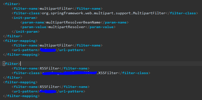 위에서 구현한 XSSFilter는 web.xml에 필터로 정의 해주어야 작동한다. 하지만 multipart 처리를 위해