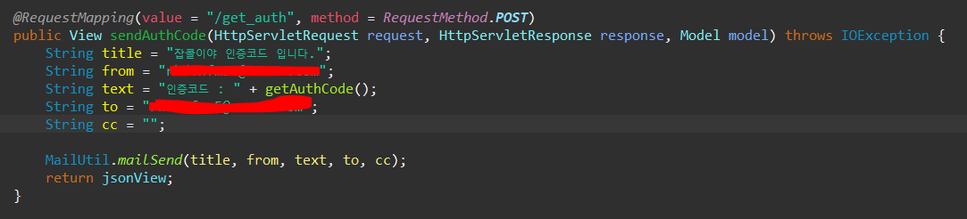 나는 Util패키지내에 따로 Mail유틸로 정의해서 메일 관련 메서드를 정리하려고 한다. Controller나 Service에서 빈객체로 설정한 MailSender를 @Autowired 같이 빈 객체를 주입받아 사용할 것이라면 조금 설정이 다를 것이다.