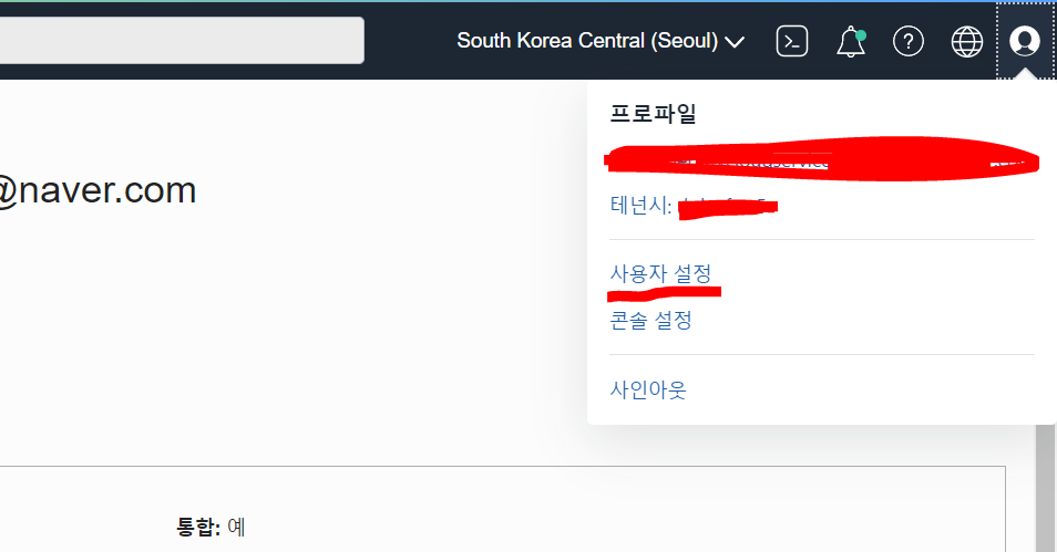 계정 로그인 후 맨 오른쪽 위 아이콘을 클릭하여 사용자 설정으로 들어간다.