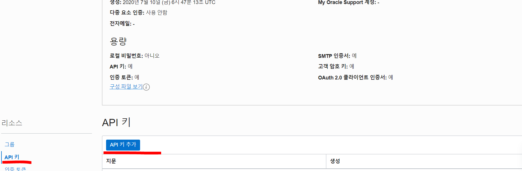 참고로 오라클 클라우드 api키는 최대 3개까지만 가능하다.