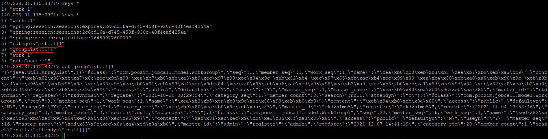 - key : 데이터 저장될 key값이다. getWorkGroupList처럼 커스텀해서 정의하거나, KeyGenerator를 따로 선언해서 사용할 수 있다. 내 경우에 #로 매개변수값을 활용해 key를 설정했다.