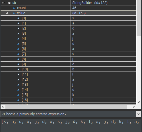char[] value를 보면 StringBuilder는 char형 배열로 값을 담고 (String도 마찬가지), 글자 수인 length를 나타내는 count 변수가 있다.