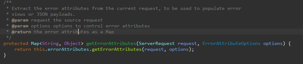 public Map<String, Object> getErrorAttributes(ServerRequest request, ErrorAttributeOptions options) {
